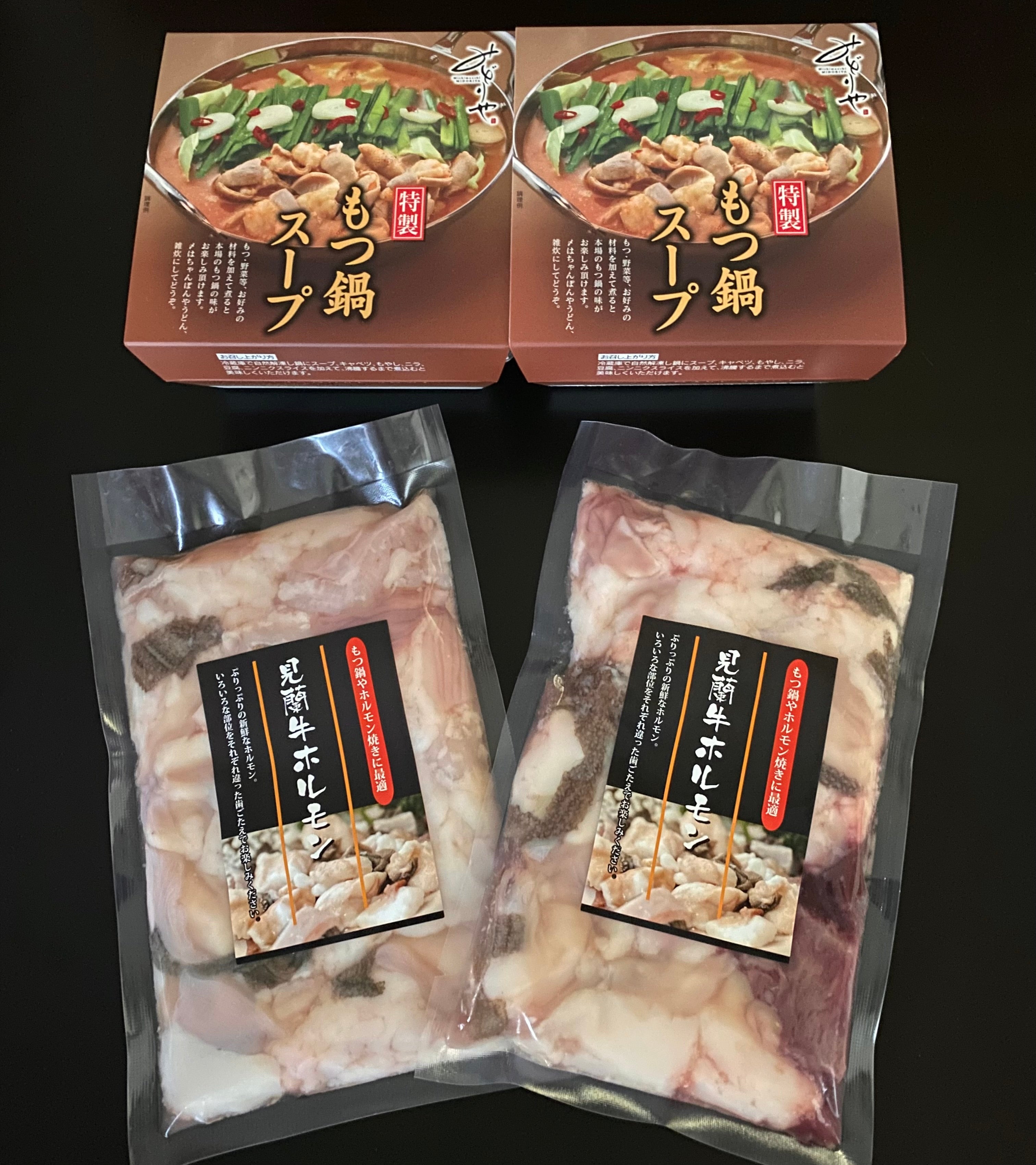 見蘭牛ミックスホルモンと旨辛もつ鍋スープのセット(2~3人前)です。